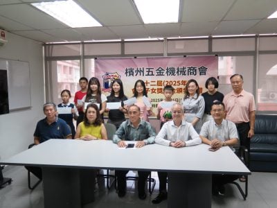 槟州五金机械商会周日(5日)举行颁发2025年第12届会员子女奖励金颁发仪式,该会今年拨出9350令吉给予23位优秀学生。