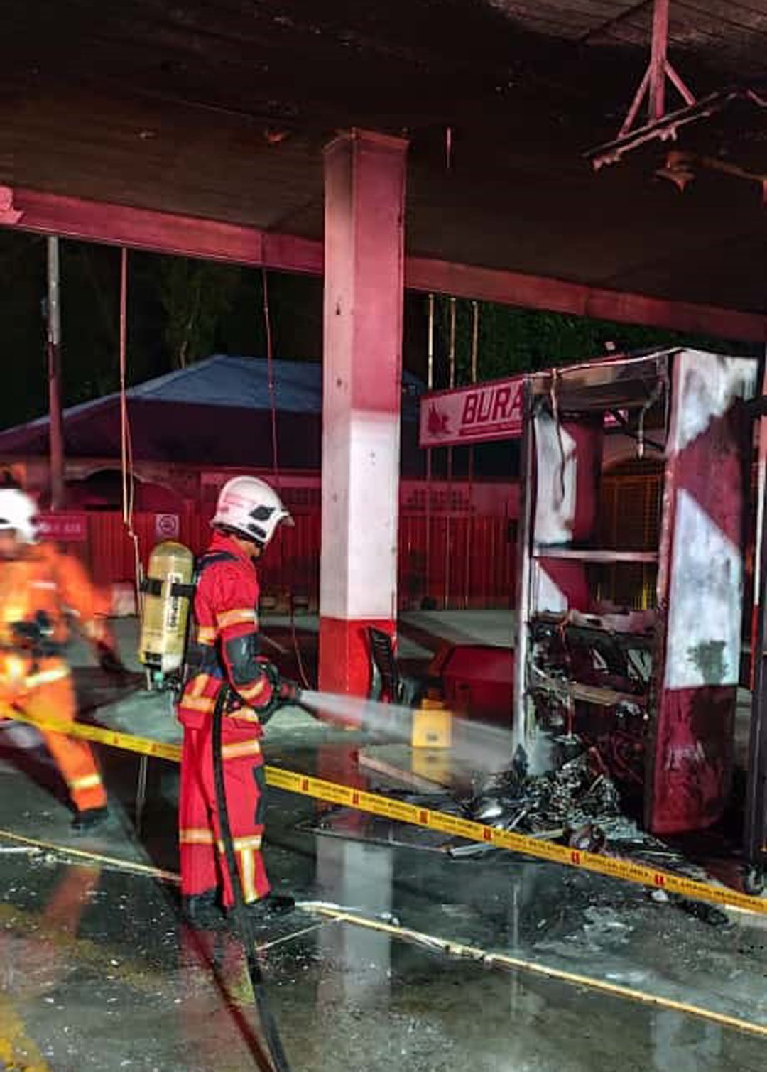 华玲消拯局主任祖凯里指出,该局是于昨晚8时52分接获投报电话,通报油站发生火患,他们立即派出1辆消防车与1辆四驱车共10名队员赶往现场灭火。