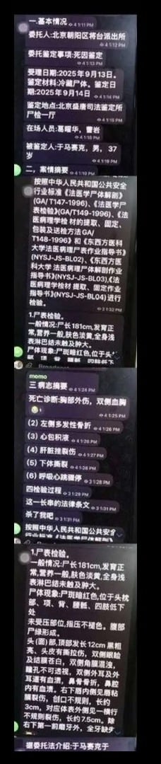 此次“盛唐司法鉴定所”被点名后,网友更要求中国司法部公开其过往案件记录与评鉴报告,以厘清真相。网传截图内容显示,于朦胧身高181cm,全身多处创伤,包括头皮撕裂、耳出血、鼻骨骨折、胸腔双侧血胸、肝脏挫裂与多发骨折。