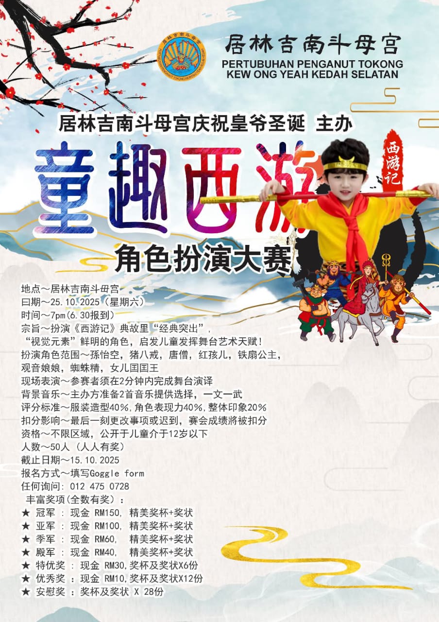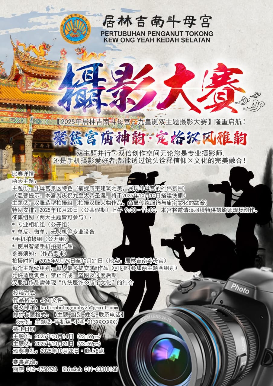 他呼吁各界人士留意“居林吉南斗母宫”脸书,入了解各项比赛细则,希望各界踊跃参与。