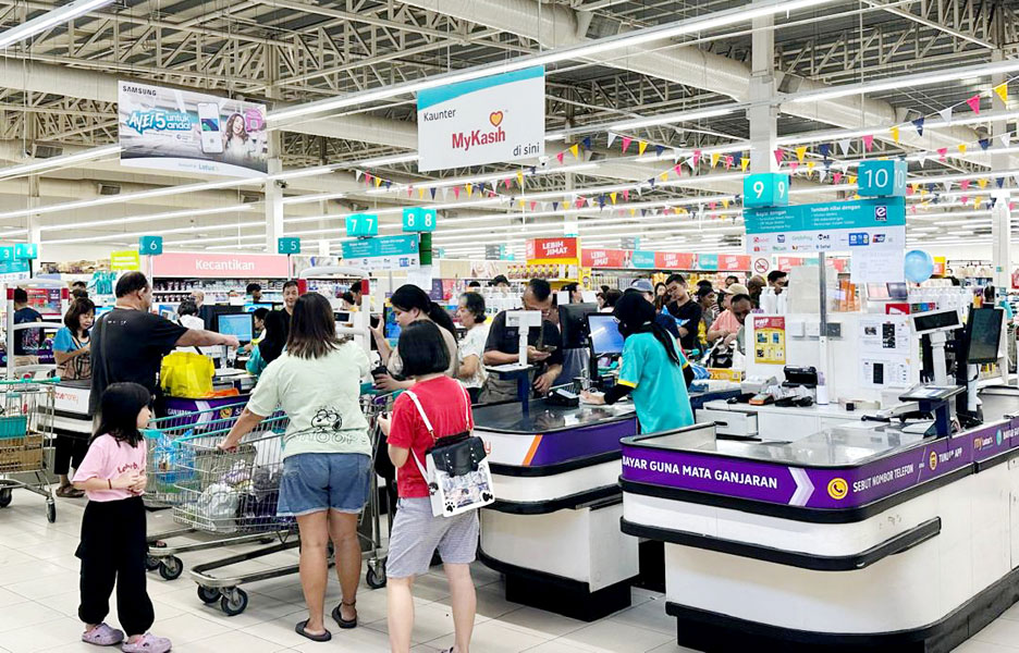 许多民众涌入霸市使用SARA援助金购买日常用品。(档案照)