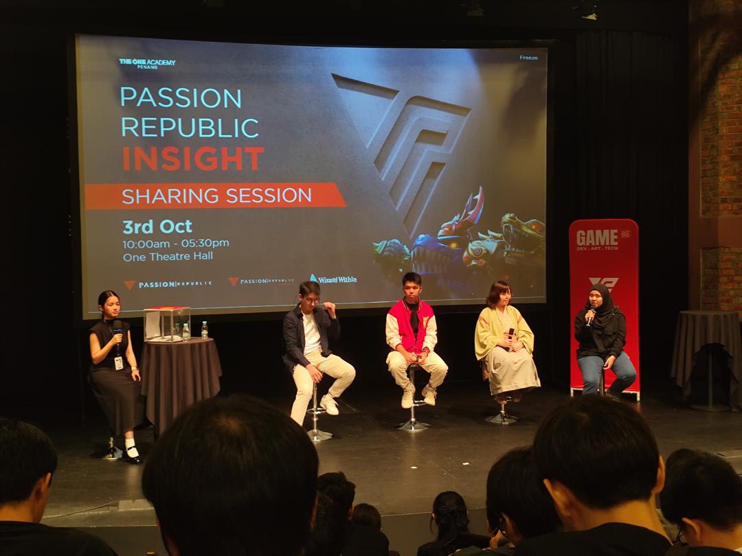 当天焦点落在 Passion Republic 的分享环节。这家由 The One Academy Penang 校友创立的 AAA 级动画与游戏开发工作室,以原创 IP 游戏《GigaBash》蜚声国际,目前正持续开发全新作品《Wizard Within》。团队成员在会上深入讲解从创意构思到制作流程的经验,分享如何在动画与游戏设计领域建立职业道路的实用技巧。