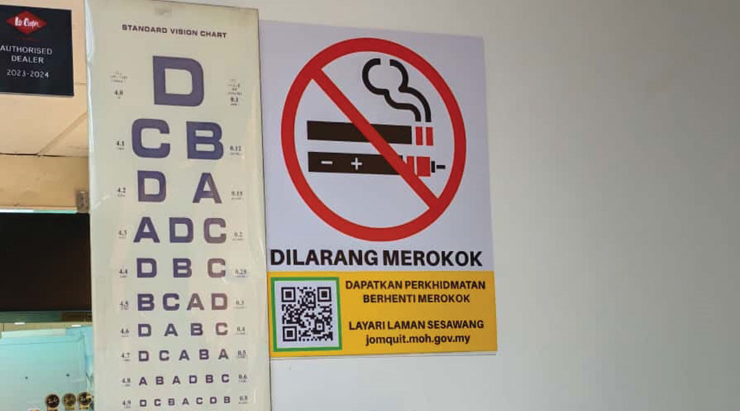 卫生局近来展开严查未张贴“禁烟与禁电子烟”标志行动,除了餐饮店,从事其他行业的所有商家都一律必须遵守在店内张贴“禁烟和禁电子烟”的新标志贴纸,否则会面对罚款,目前亚罗士打区内已有商家中招。