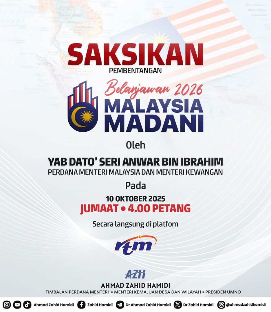 他也邀请全国人民关注与参与2026年财政预算案的提呈,并祈愿该预算案能继续为全体马来西亚人带来繁荣与福祉。