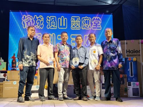 席间,主席陈顺财在顾问邹振山及邹进豹的陪同下,赠送纪念牌匾予槟州元首封赐人士,包括该庙执行顾问陈教贤受封PJK勋衔,文书沈忠坡受封PJK勋衔,名誉主席林亚玖受封PJK勋衔。