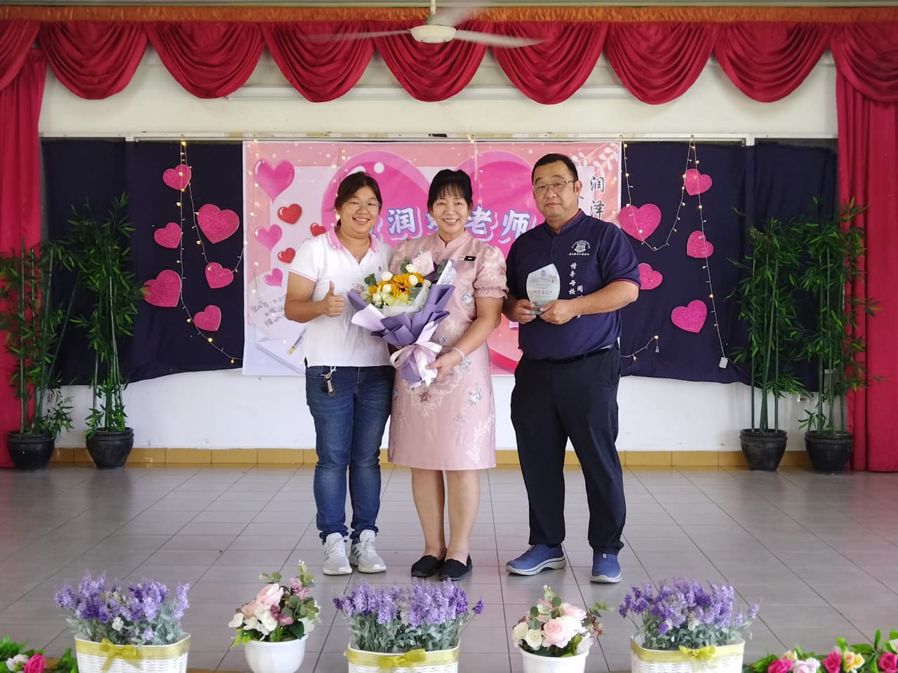 校长锺细妹致词时指出,黄润娇老师投身教育34年,先后任教于毓英华小、西岭华小,随后在老火较华小服务长达29年。