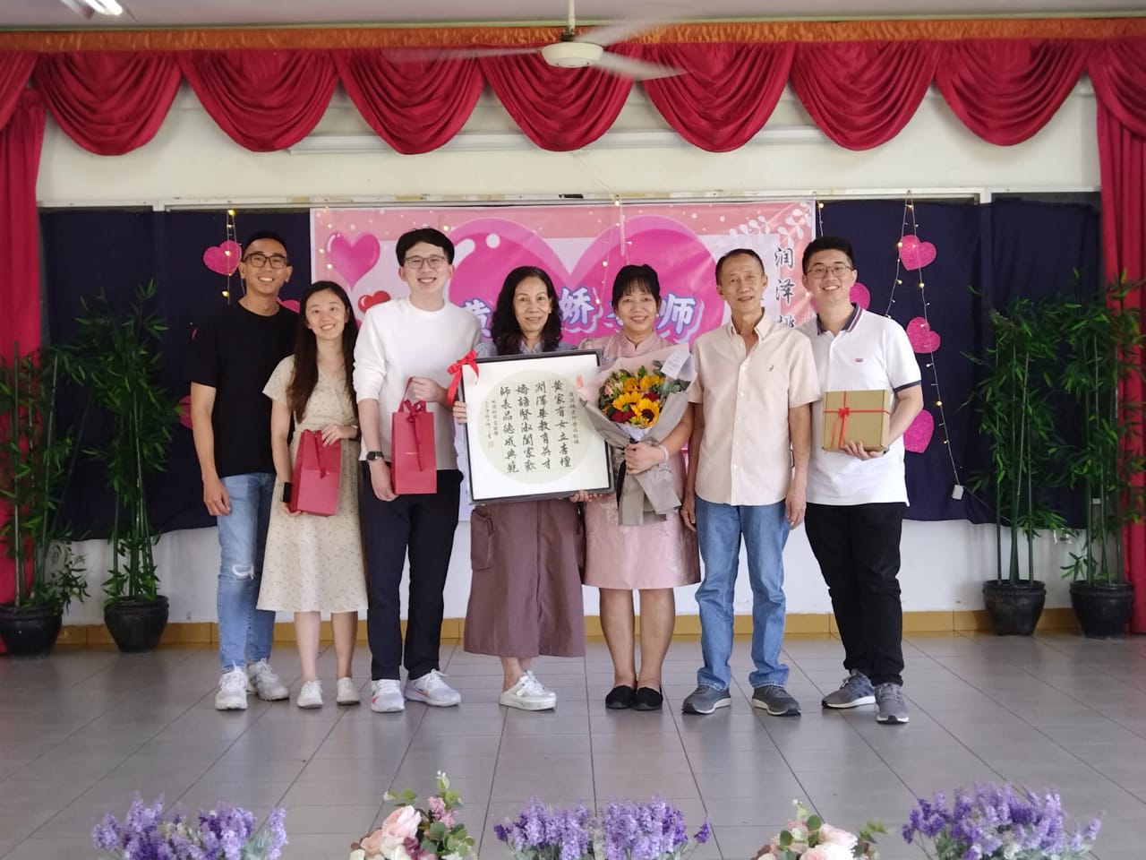 仪式上,董事长潘光耀、家协财政孙霈津、副校长许蔧巸、李敏、陈伟贤及黄润娇的家人赠送纪念品给黄老师。