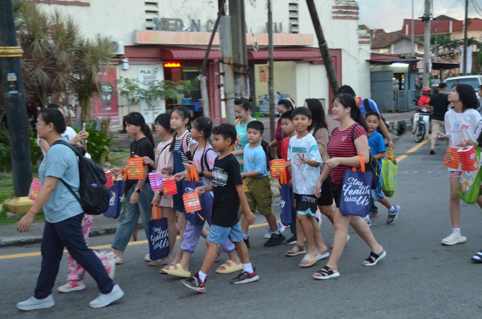 民众从傍晚6时30分开始陆续聚集在居林广福宫,举行挥旗礼后,开始提灯大游行。尽管游行前下起细雨,但并未影响民众庆祝佳节的热情。队伍一路前行至中秋嘉年华会的会场——吉南华人体育会。