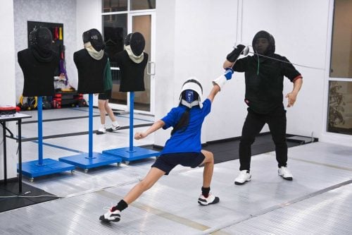 根据《珍珠快讯》报导,30岁的工程师谢汶峰与妻子戴慧娴及朋友共同打造槟城击剑馆 Fencing Zone,目前约有10名学员正朝竞技方向发展,每周训练3到5次,放眼冲刺2026年马运会。
