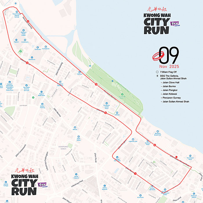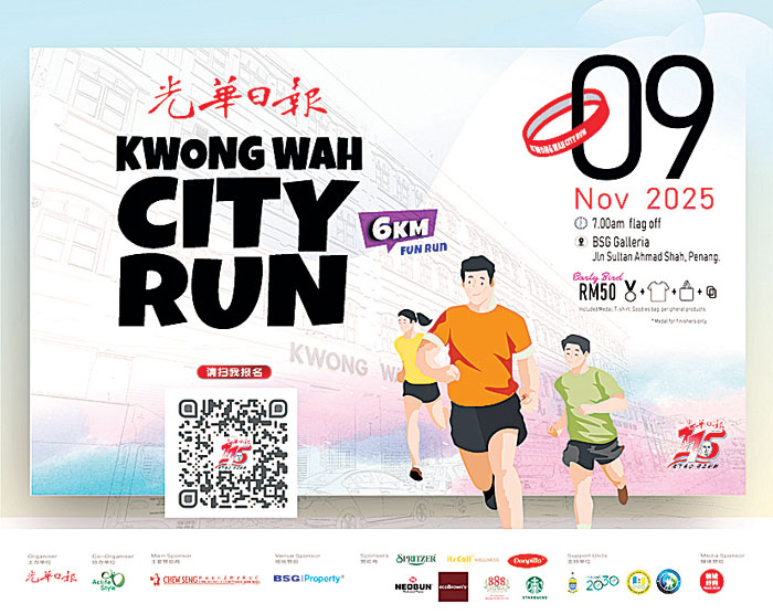 “光华环市跑2025”将于11月9日(星期日)早上7时盛大挥旗开跑!活动从乔治市红毛路(Jalan Sultan Ahmad Shah)The Galleria出发,全程6公里,以非竞赛性质的欢乐跑形式进行,欢迎民众踊跃报名参与,一同畅享健康与活力的美好时光。”