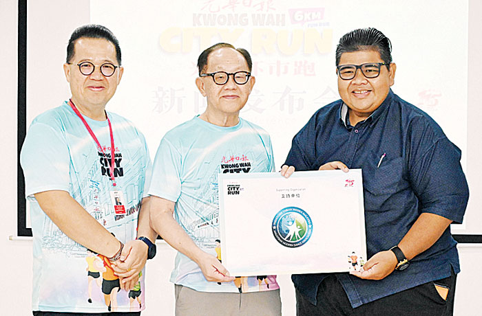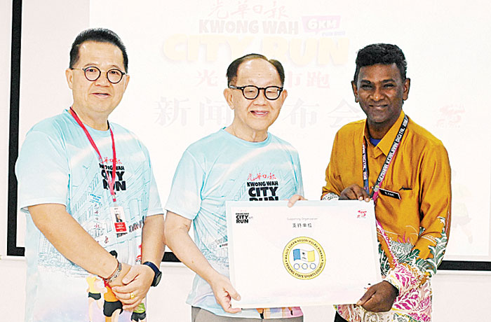 “光华环市跑2025”于9日举行新闻发布会暨赞助移交仪式,由各协办单位、支持单位、赞助商完成移交,本报总经理拿督李兴前接领、署理总经理林星发陪同见证。出席者尚有光华市场有限公司暨发行营业部高级经理周志伟、副经理叶衿绣等。