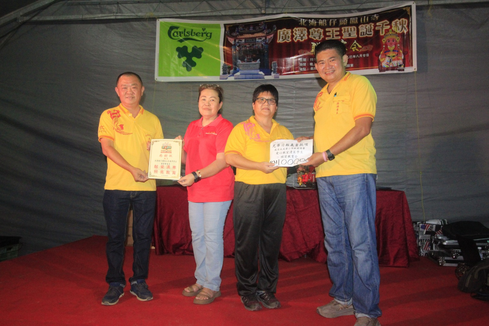 大会义卖《光华日报》筹获1000令吉,由陈儒德移交给“威省我是华小献爱协会”代表黄宝铃接领;《光华日报》执行员余美蕊移交感谢状予林财城。