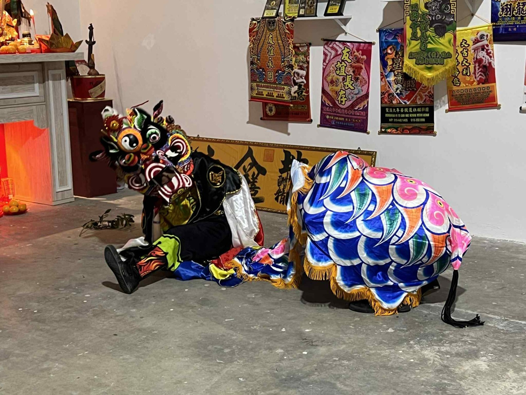 他提及,在较早的开光仪式中,负责团员一舞麒麟象征麒麟醒来,然后进行行礼、拜四方、绕圈寓意“绕金钱”仪式,之后进行采青动作,来到尾声有段滚麒麟身动作,代表清洗身体意思,之后向帅旗敬礼。