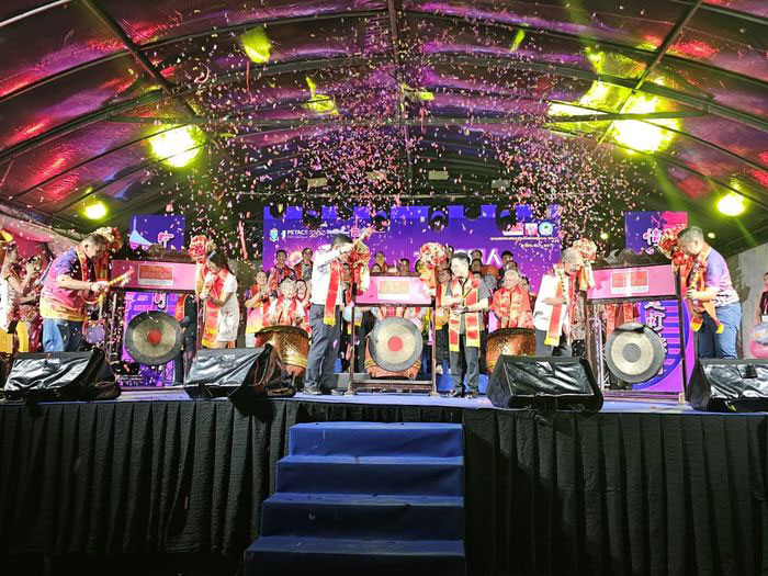 “因此此次的‘乙巳年情溢中秋·月映槟榔屿’中秋晚会,获得捷运公司的特别允许在社尾万山旧址空地进行。”
