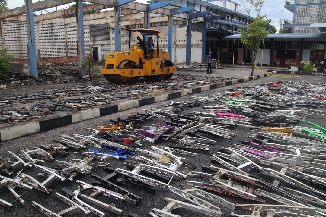 吉打州总警长拿督阿兹里发文告指出,这项销毁行动是继今年4月举行的首阶段活动后的第2阶段,所有被销毁的零件皆已获得法庭发出的销毁令,共涉及1385件摩托车零件。同时开档处理1088宗改装摩托车配件的销毁申请档案。