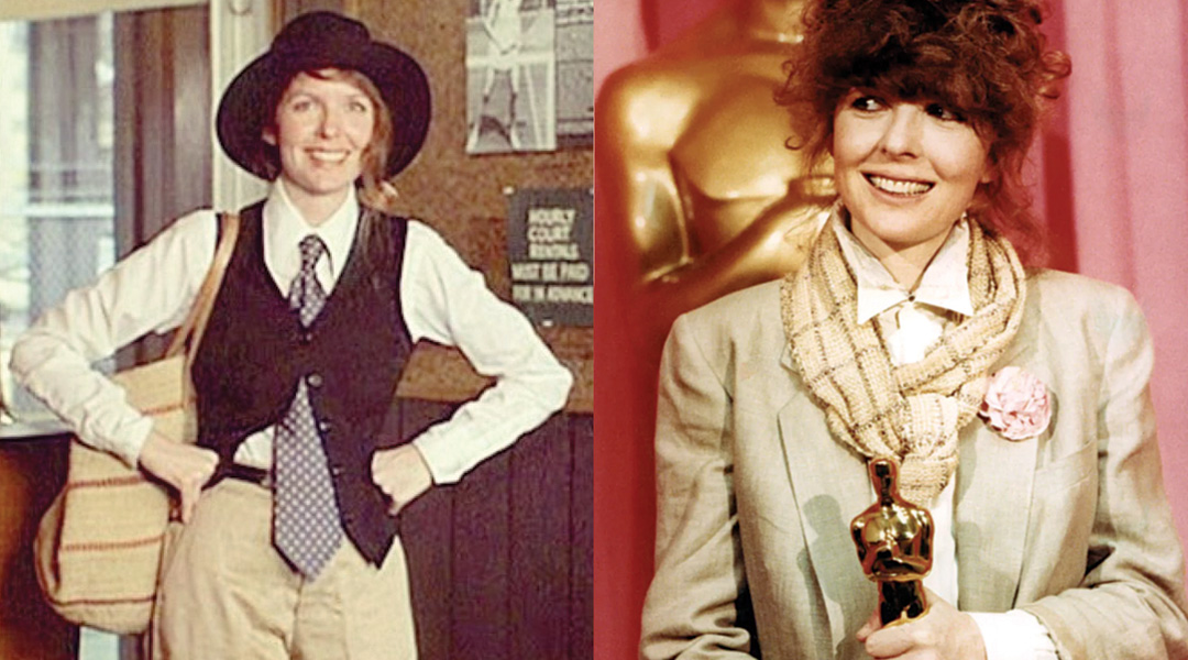 黛安基顿以《安妮霍尔》荣获奥斯卡影后,并以片中率性男装造型引领风潮,成为时尚指标。