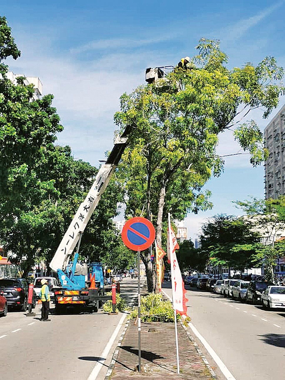 全区修剪大树确保行人安全