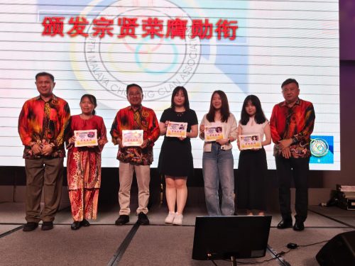 大会颁发纪念品予该会会员子女学成荣归及荣膺2025年槟州元首封赐勋衔人士,包括副会长锺丁海PKT、总务锺绍兴PKT、妇女组主任锺淑芳PJM、会员锺立宗PJM;医药顾问锺仁杰医生荣获马六甲州元首封赐DSM准拿督勋衔;锺舒韵及锺舒卉荣获吉打苏丹殿下封赐ASK勋衔。