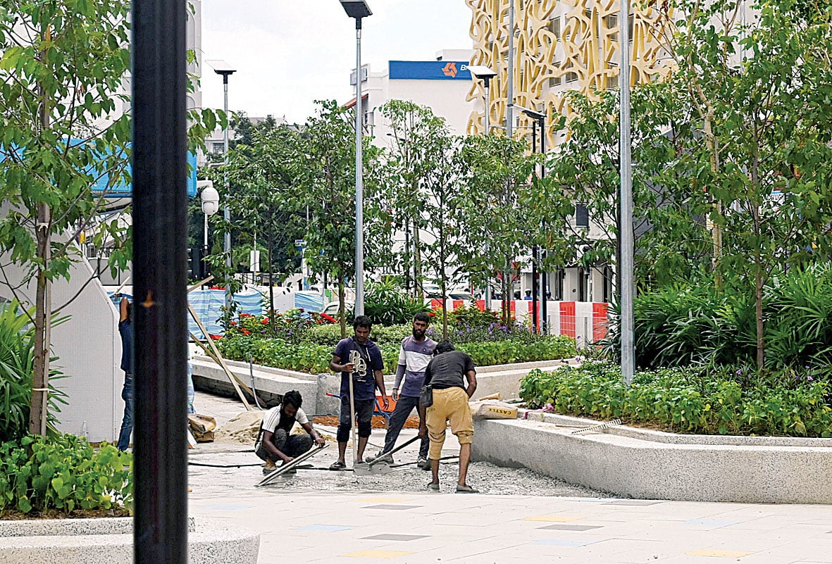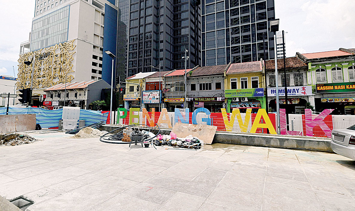 根据本报摄影日前走访拍摄时,看见广场地砖已完成铺设,广场上的Penang Walk彩字板已安装,绿色造景也近完成。