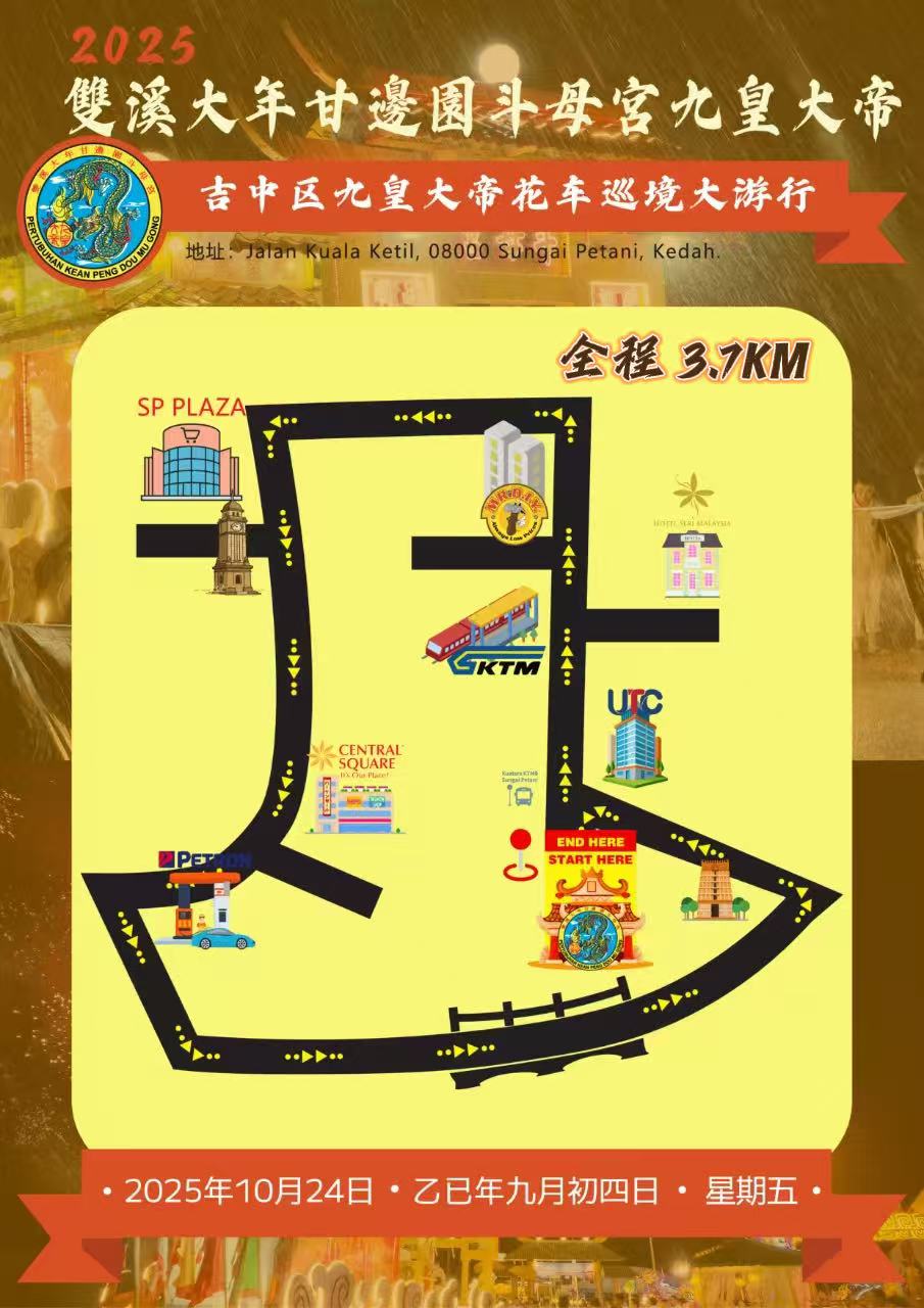 今年由甘边园斗母宫轮值承办的“第10届吉中区花车巡境大游行”将于本月24日(星期五,农历九月初四)晚上7时,盛大举行!