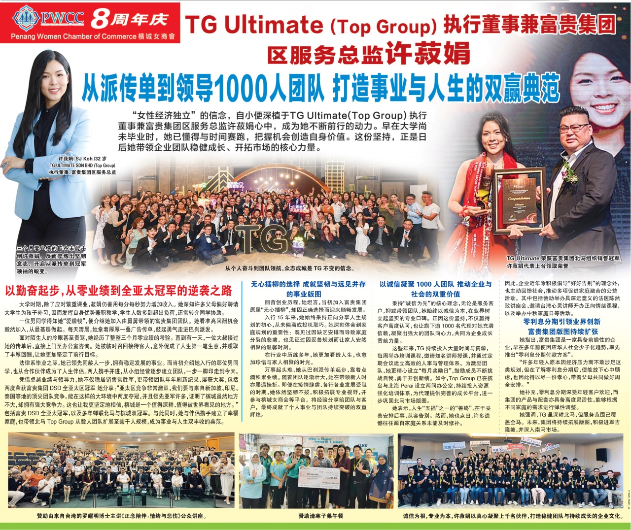 TG Ultimate执行董事兼富贵集团区服务总监许菽娟 从派传单到领导1000人团队 打造事业与人生的双赢典范