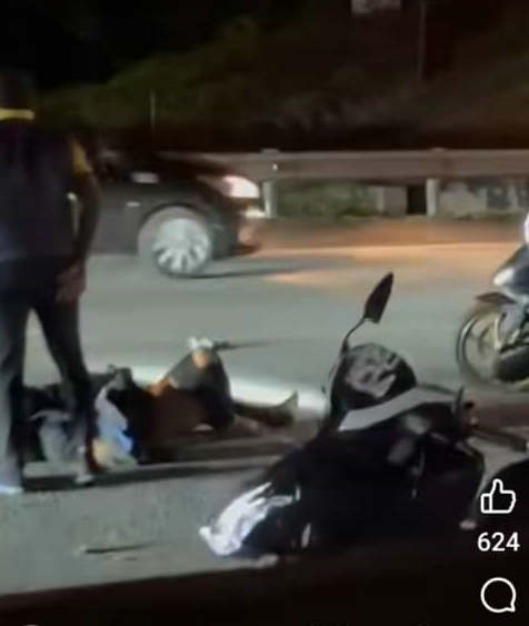 一辆罗里在南北大道靠近慕阿林南下路段,疑失控撞及路中分界堤后,波及2辆在反方向车道行驶的摩托车,酿成1死4伤。死者为罗里跟车员,被抛出车外当场丧命。