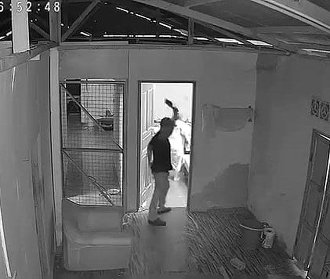 根据网传的视频,一名戴鸭舌帽的蒙面匪,手持利器破门闯入一间民宅作案。
