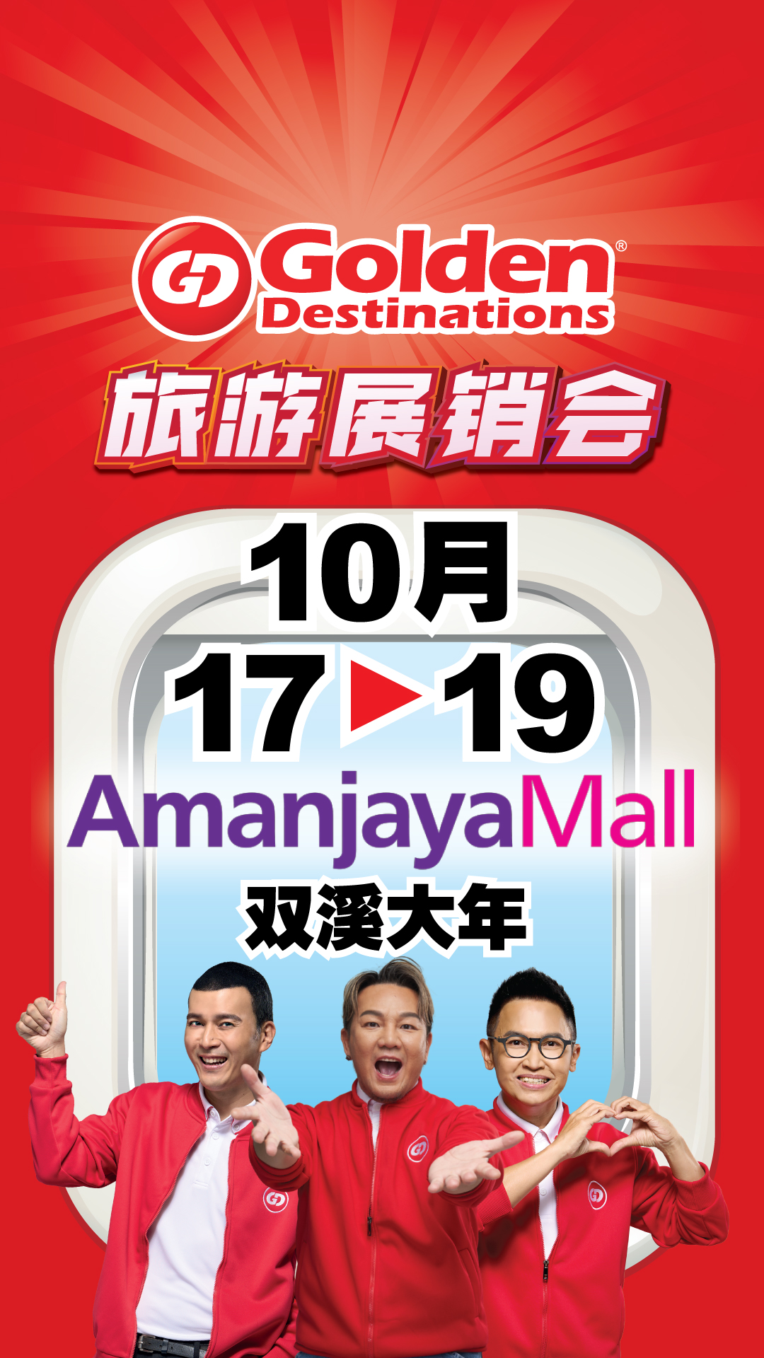 黄金旅程(Golden Destinations,GD)将于10月17日至19日,在双溪大年阿曼再也广场(Amanjaya Mall Sungai Petani)举办大型旅游展,为北马民众带来独家旅游优惠与丰富活动。