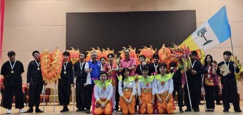 韩江中学舞龙队在今年的州际及全国赛会中,夺得双冠一季军的荣荣耀。