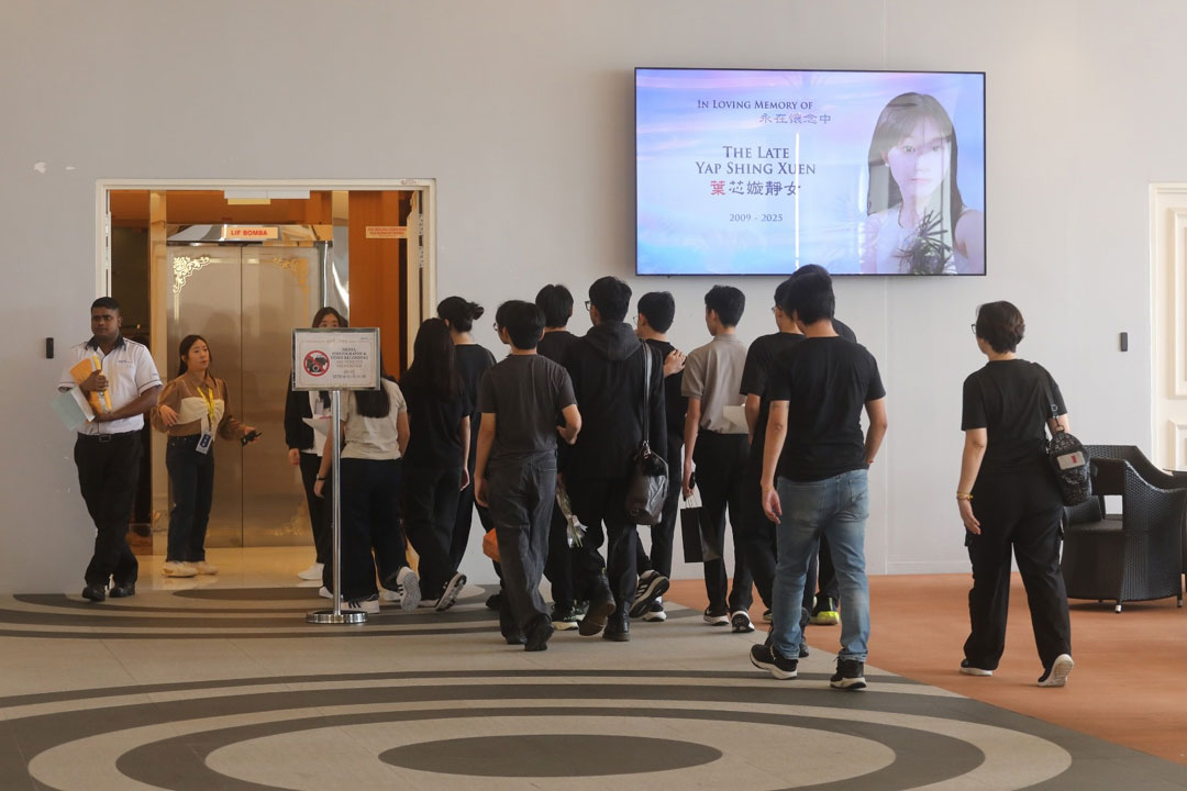 此外,治丧进入第4天,仍有许多叶芯嫙的亲友、同学及民众前来吉隆坡富贵生命馆的灵堂吊唁,不少身穿黑衣的同学,手持花束进入灵堂拜祭好友,一些女同学更触景伤情流泪不止,需要其他同学安慰。