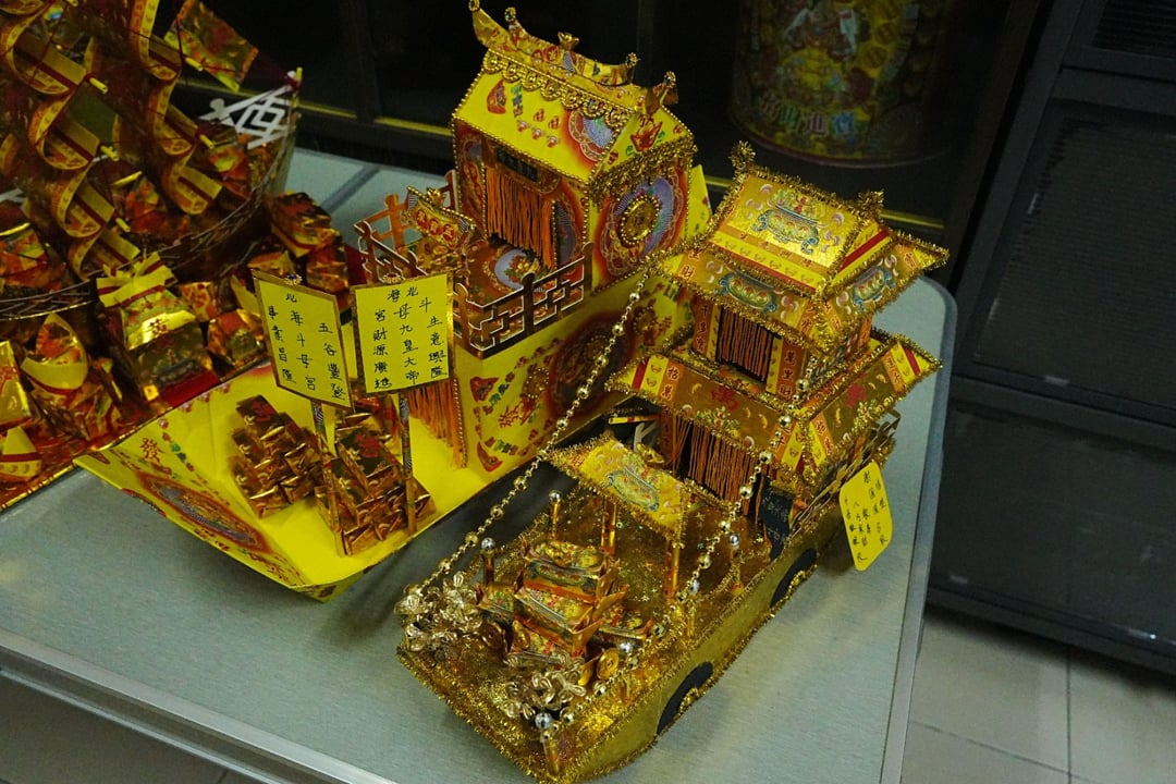 除了殿宇,她们也制作纸扎烧猪、法船等作品,用以祈福、超渡与感恩。
