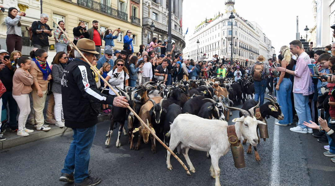 移牧节期间,牧羊人会赶着牲畜穿过城市主要街道,成为表演和庆祝活动。坐落在古老迁徙路线上的马德里,平时车水马龙的市中心道路,化身为“羊群专用道”,景象壮观。