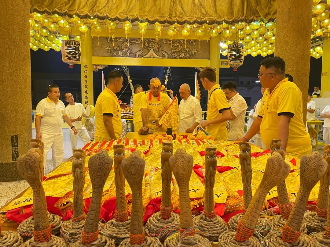 大山脚斗母宫为众神法器进行开光仪式。