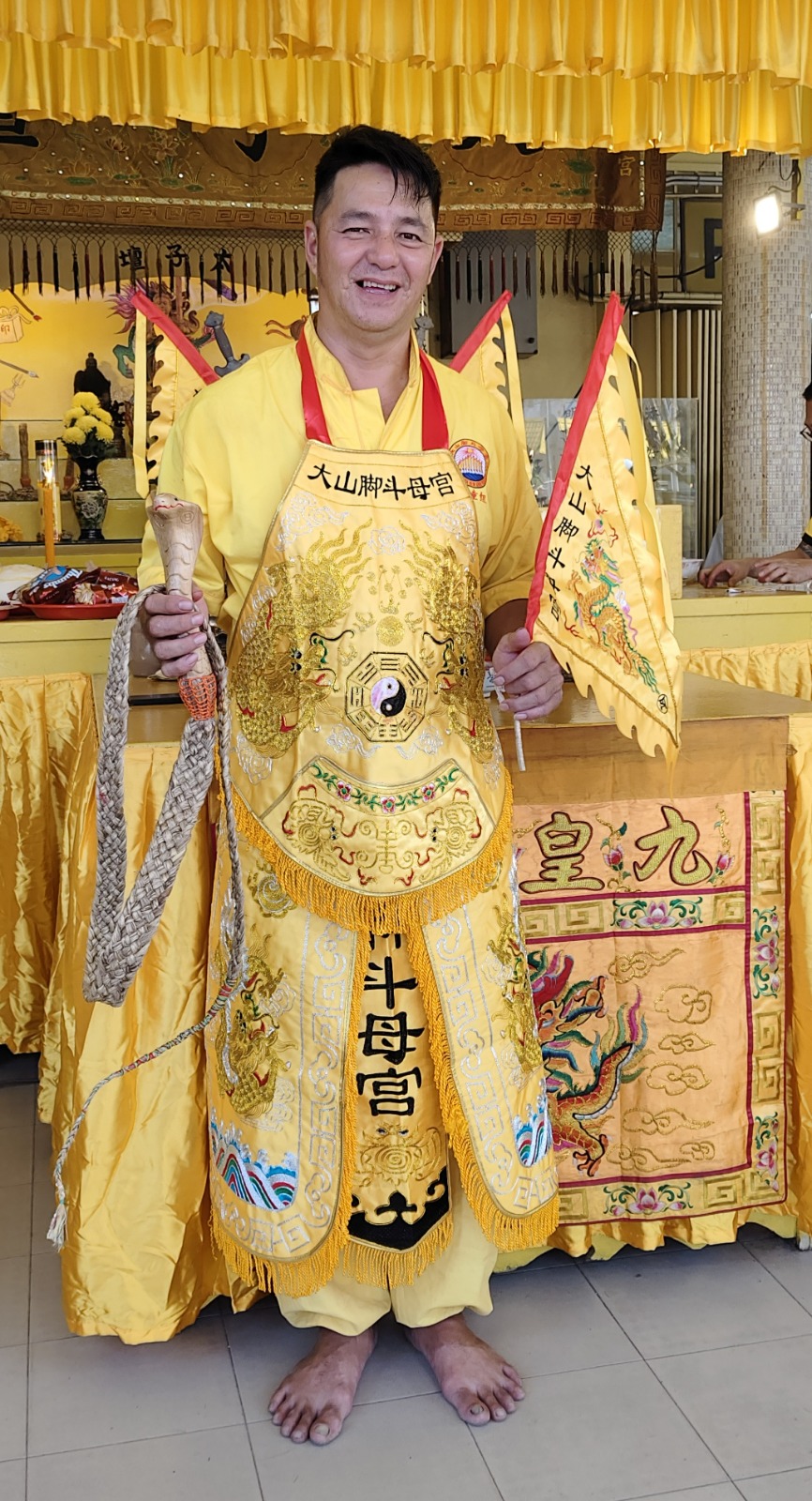 另外,吴思纶补充,理事会今年耗资2万5000令吉,首次全面焕新5样众神法器,包括太子袍、法鞭、令旗、龙针及绣球(各36件),并增添150套印有“大山脚斗母宫”字眼的乩童服,以统一服饰欢庆九皇爷诞。