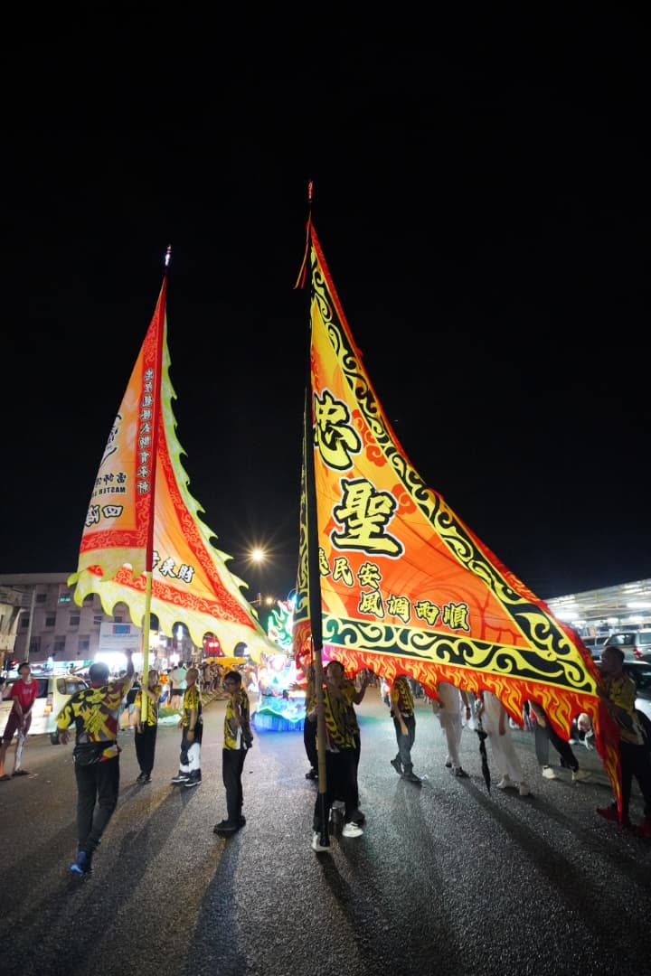 当晚约11时许,接神队伍整装待发。浩浩荡荡的迎神大队由电音三太子、花车、舞龙舞狮及五彩大旗队领头,沿着怡保督公路和休罗街前进,所到之处吸引了大批民众善信夹道观看。鼓乐声与人声交织成一片欢腾景象,街头瞬间成为信仰与文化的流动舞台。