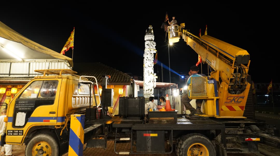 怡保吉灵当星皇殿为迎接2025乙巳年九皇大帝千秋宝诞,增设的六座高达30尺的宏伟龙柱,并于昨晚(20日)8时,以高空作业车缓缓升起,登上30尺高的龙柱进行隆重的开光仪式,由主席陈耀祖及陈贵鸿主持,场面庄严肃穆,香火鼎盛,与此同时,该殿也同步举行“接神回殿”仪式,迎请九皇大帝圣驾回殿,标志着一年一度的九皇宝诞庆典正式揭幕。
