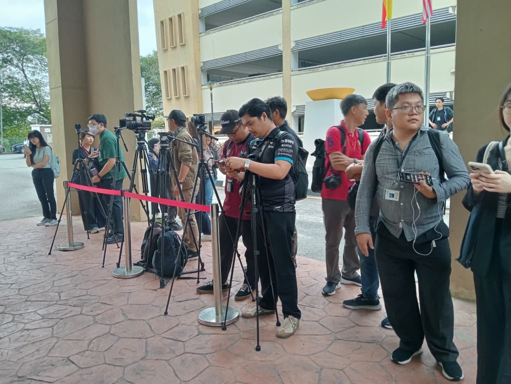 男生刺死学姐案;疑犯被延长扣留7天后于周三(22日)正式被控谋杀,大批媒体一早抵达法庭进行采访工作。