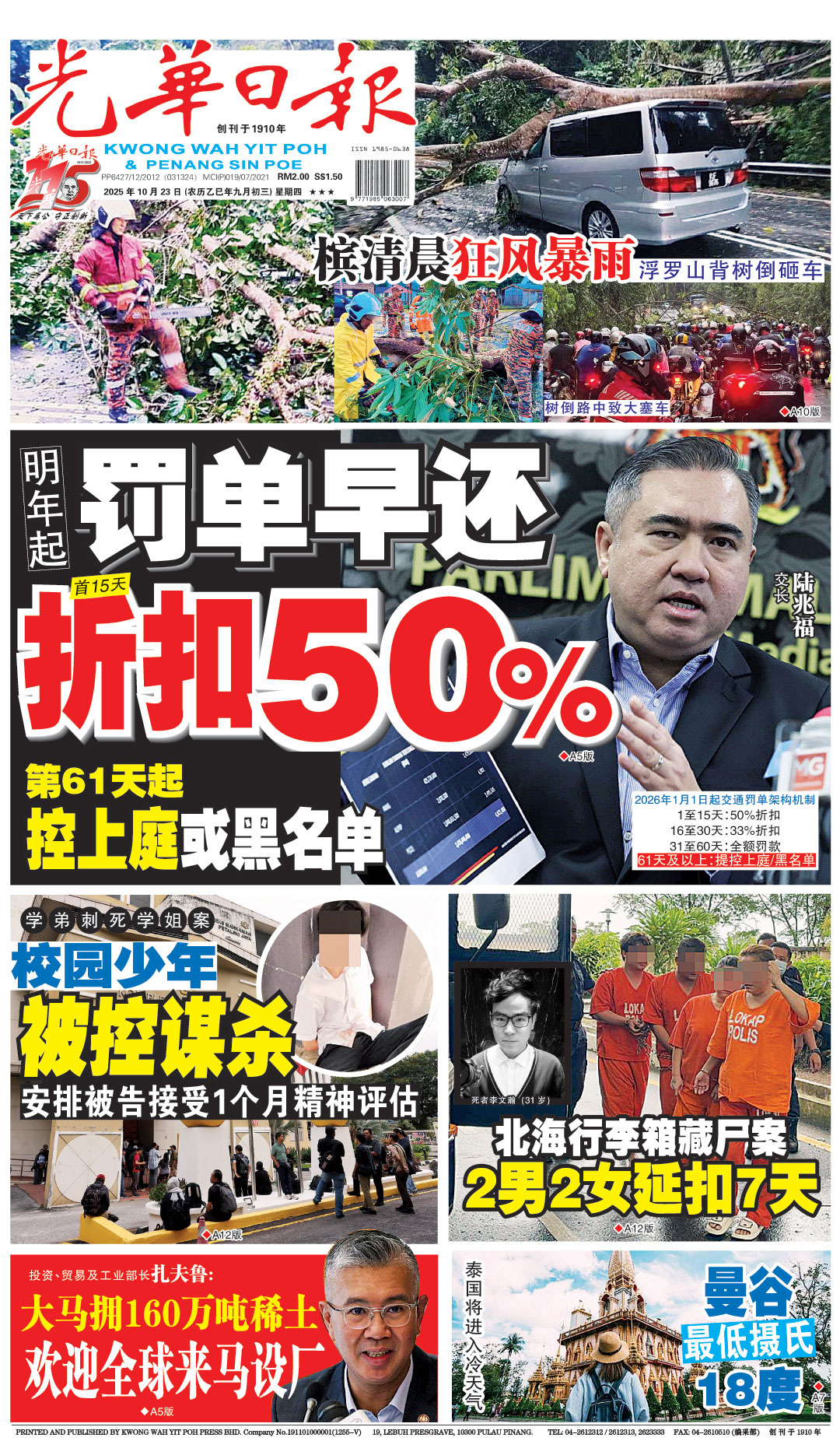 槟城清晨刮起暴风雨 浮罗山背树倒导致大塞车