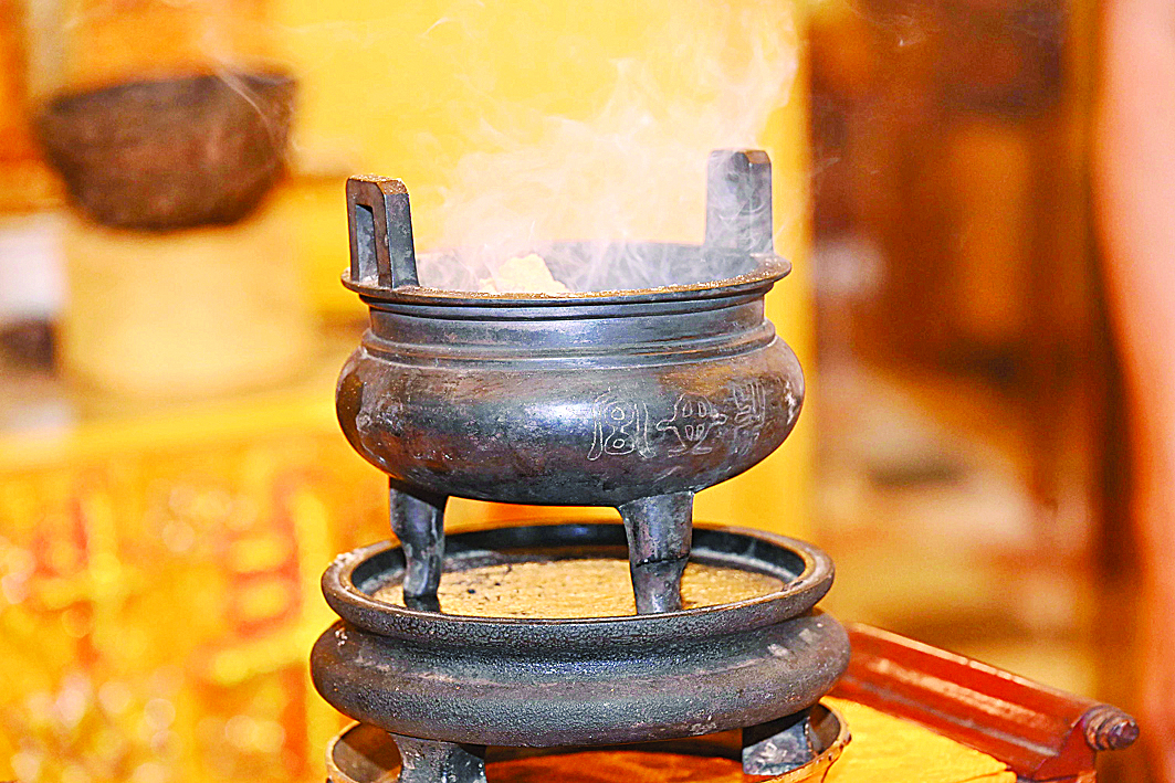 “宣德净香炉”是中原传入东南亚最早文物之一。用于请神送神仪式的重要法器。这至高无上的圣物,点燃供奉于斗母天尊的内殿,象征九皇大帝香火生生不息,道统不绝。