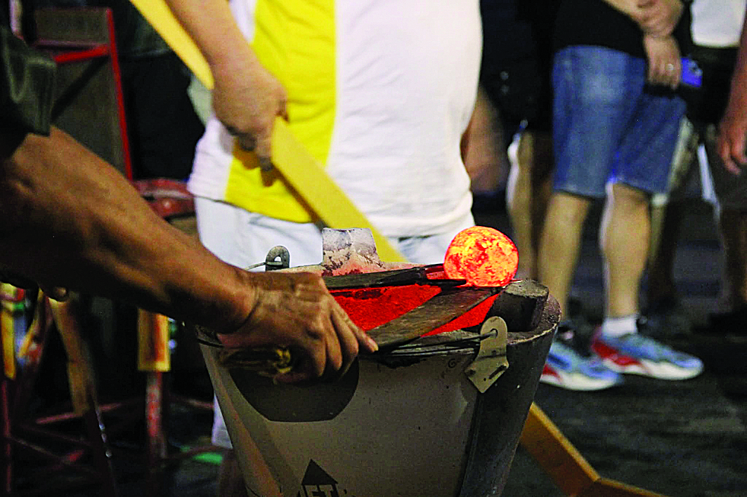 此外,他说,农历九月初三则有另一个重头戏,就是“抛红柑”,所谓的“红柑”,就是在火炉里烧了许久的铁,而乩童们会把这些被烧成红色的“火球”,放在手上滚动,从左手抛到右手,右手抛到左手。