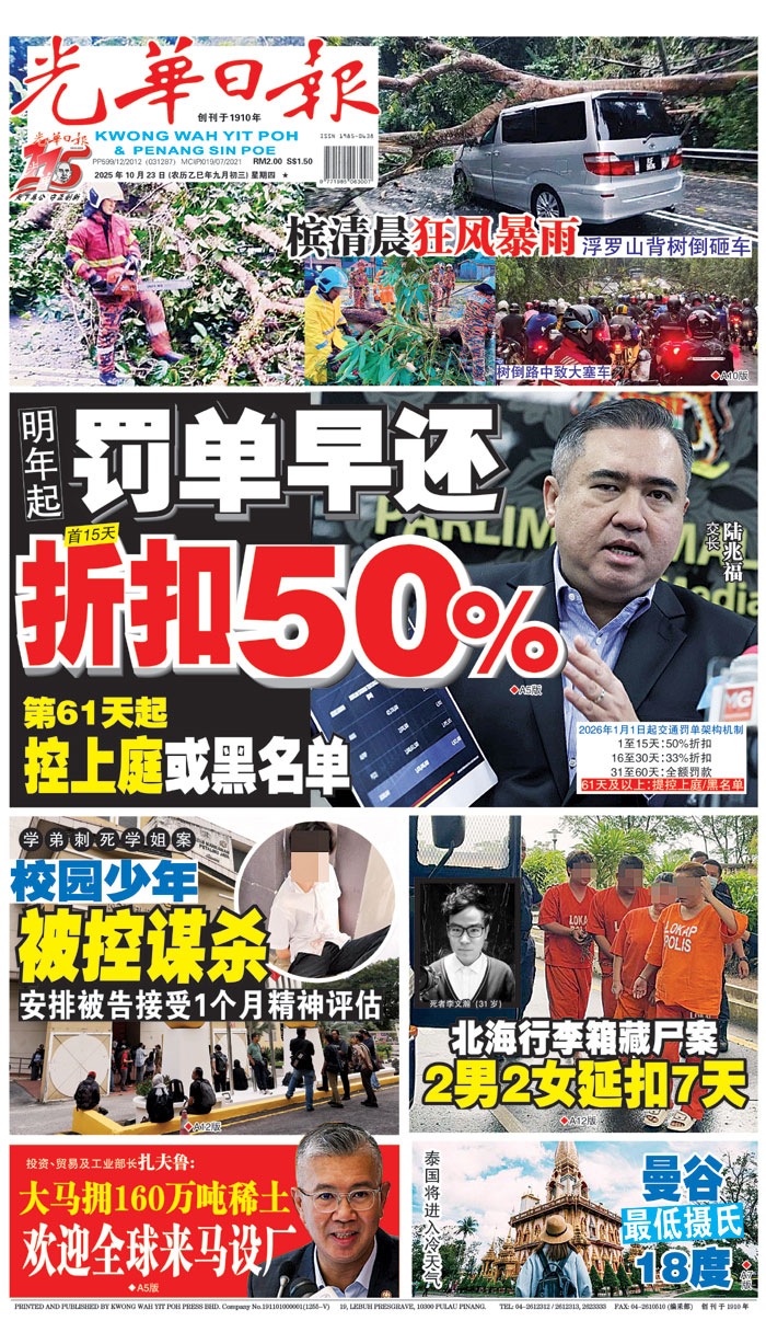 槟城清晨刮起暴风雨 浮罗山背树倒导致大塞车
