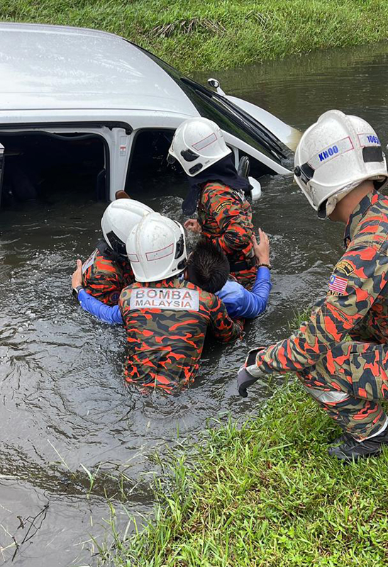 槟州消拯局发文告指出,当局于上午10时07分接获投报,消拯员于10时13分到场,发现涉事轿车坠入沟渠,司机被困在驾驶座。
