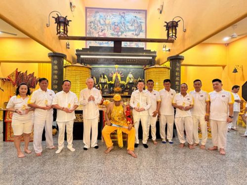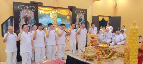 聚理斗母宫新届理事在“皇爷”前宣誓就职。