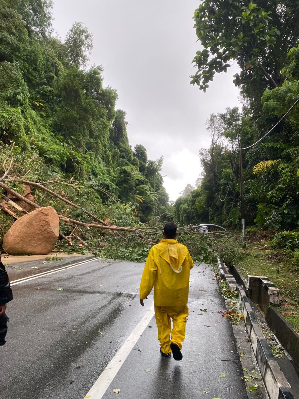 另一方面,槟州基设及交通事务行政议员再里尔表示,周四(23日)约下午5时,浮罗敦沙顿路(浮罗新路)发生山泥倾泄造成树倒及大石坠落事故,该路段已全面封路。