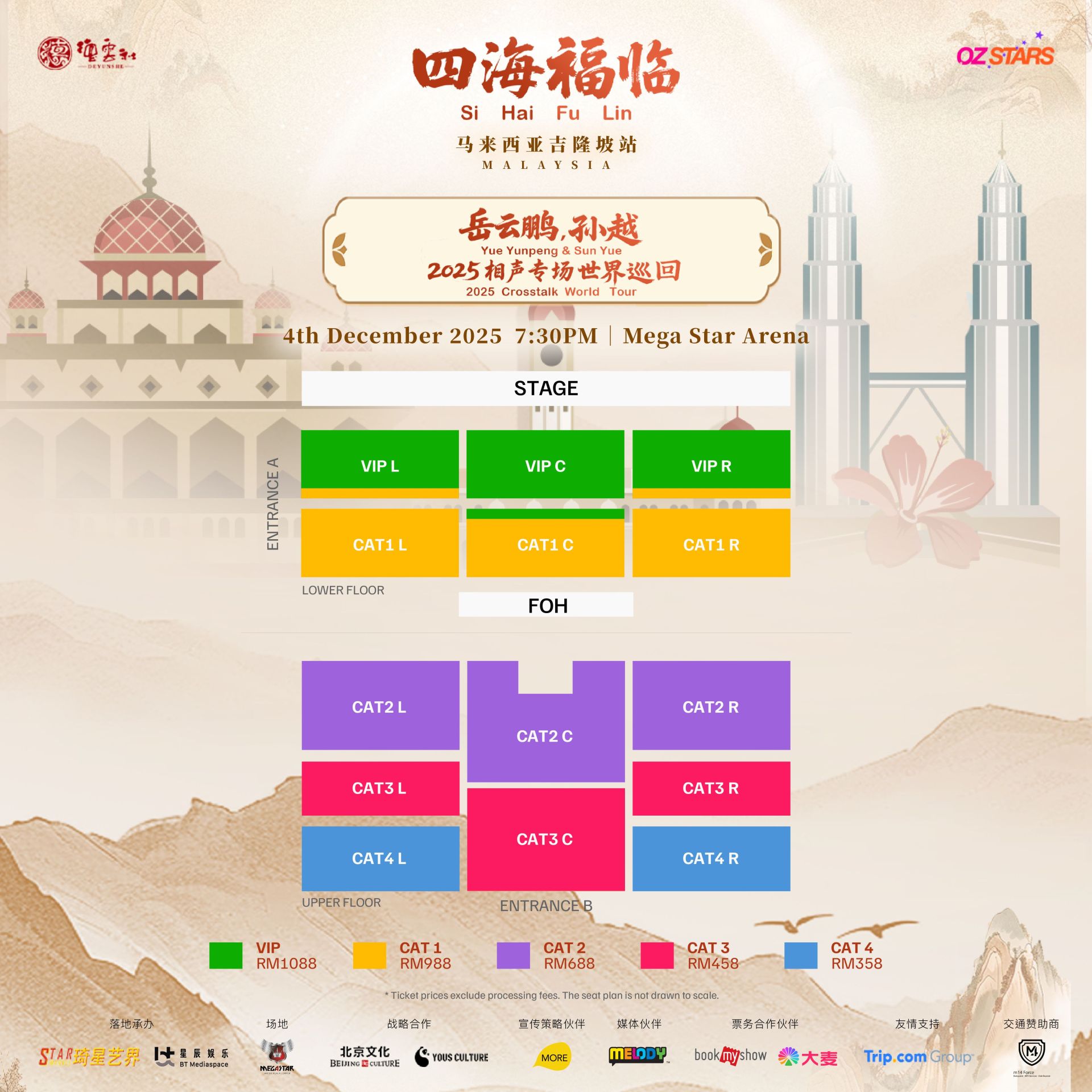 《四海福临2025相声专场》世界巡演—吉隆坡站,将于12月4日(星期四)晚上7时30分在Mega Star Arena 举办,票价分为1088令吉(VIP)、988令吉(CAT 1)、688令吉(CAT 2)、458令吉(CAT 3)及358令吉(CAT 4)。门票已正式通过 https://my.bookmyshow.com/en/events/yue-yunpeng-sun-yue-2025/DEYUNSHE ,以及大麦票务全面开售。欲知更多详情,请浏览 YOUS CULTURE 寓思文化的官方消息。 #