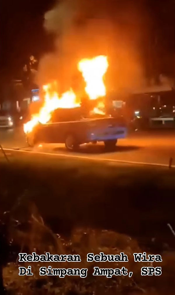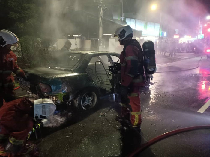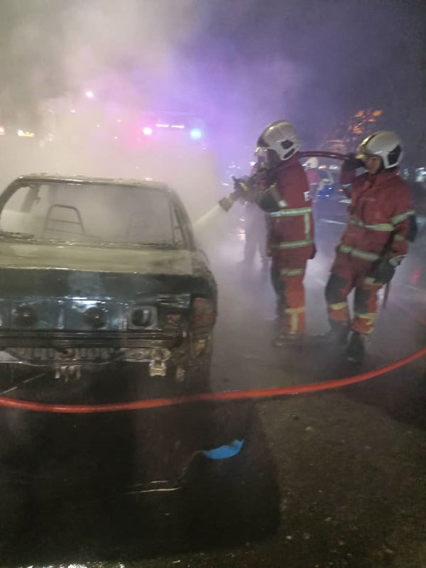 新邦安拔PUTERI EMAS路发生一起火烧车事件,一辆轿车被大火烧毁95%,所幸司机及时逃生,未造成伤亡。