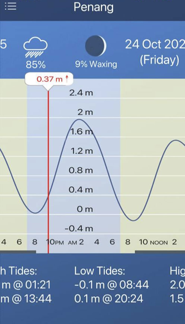 根据气象预报,槟城预计在周五凌晨3时,将会出现涨潮。