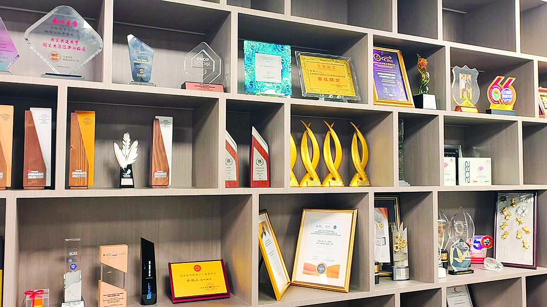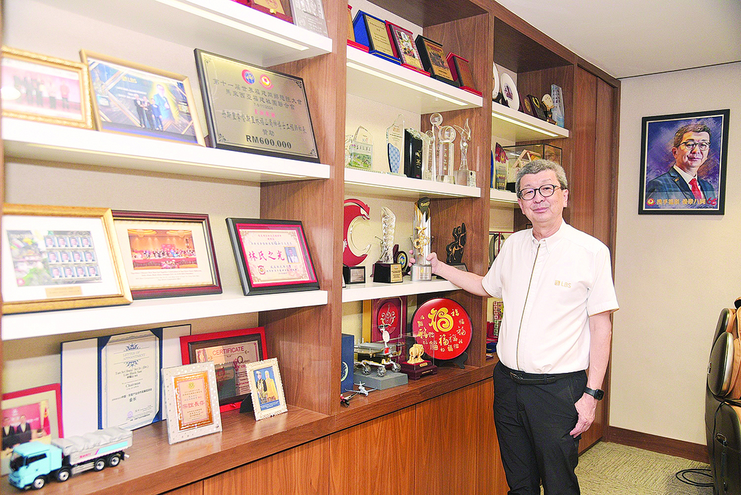 在林福山的办公室里,一整列壁橱摆满了来自华团、华校及慈善机构的奖座与感谢状。这些不仅是荣耀的象征,更是他一路走来与社会紧密联结的见证。