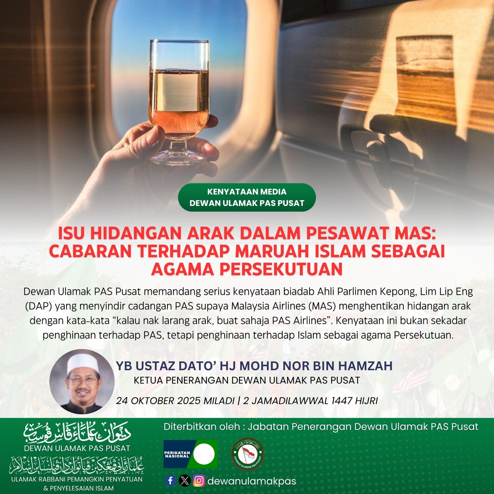 马航供酒服务成为最近的热议课题,伊斯兰党宗教师理事会(DUPP)更是为此向政府提出三大诉求,包括呼吁国库控股与交通部,立刻停止让马航供应酒类饮品。
