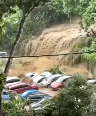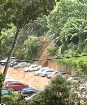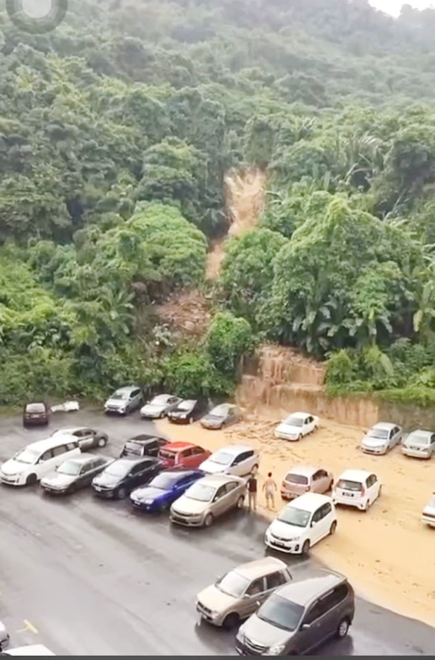 再里尔也通过媒体WhatsApp群组发出另一段今午2时许发生在垄尾区一座组屋后发生山坡黄泥倾泻,山泥涌入停车场,12辆轿车遭到波及的视频,并指这个视频才是真实发生的。